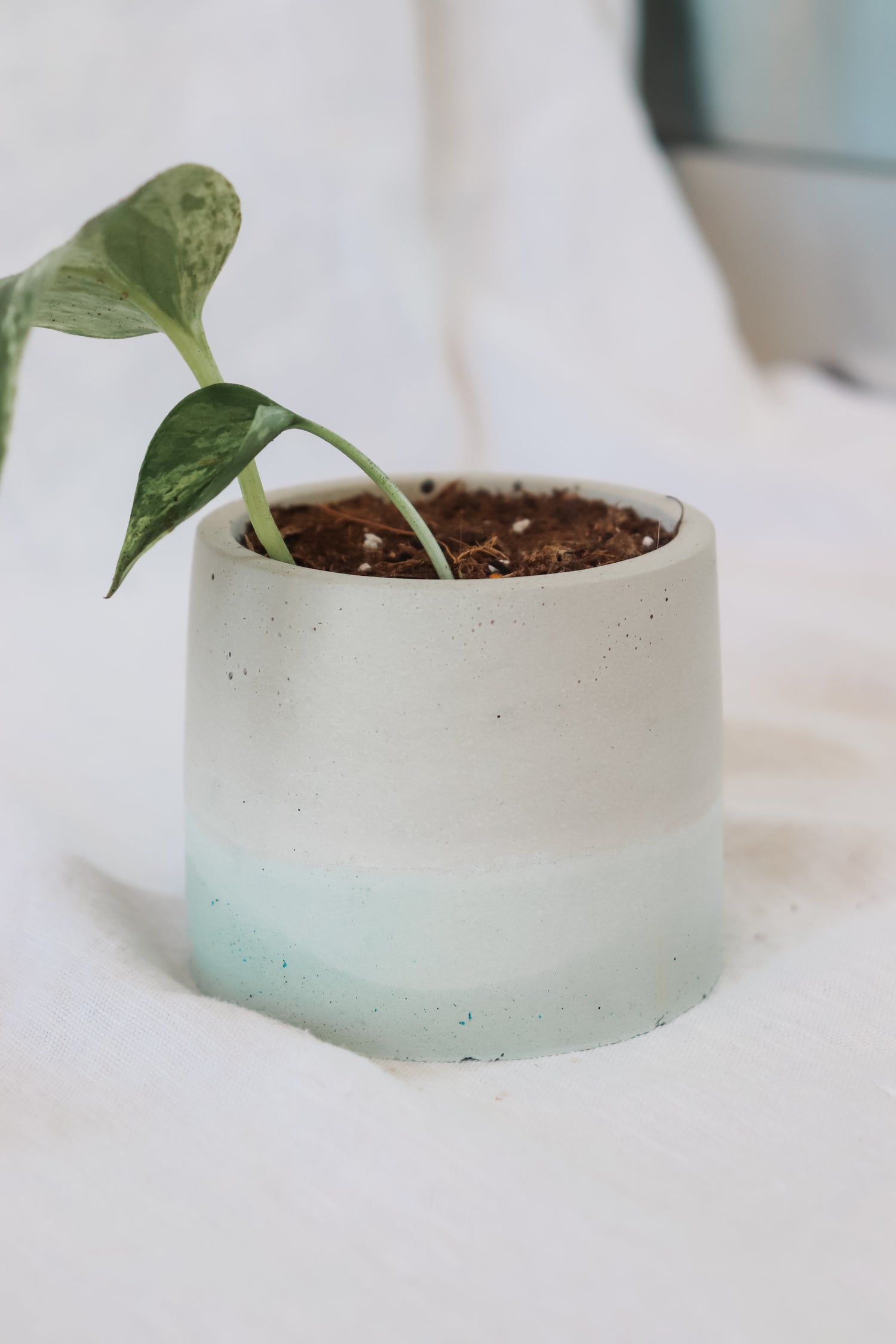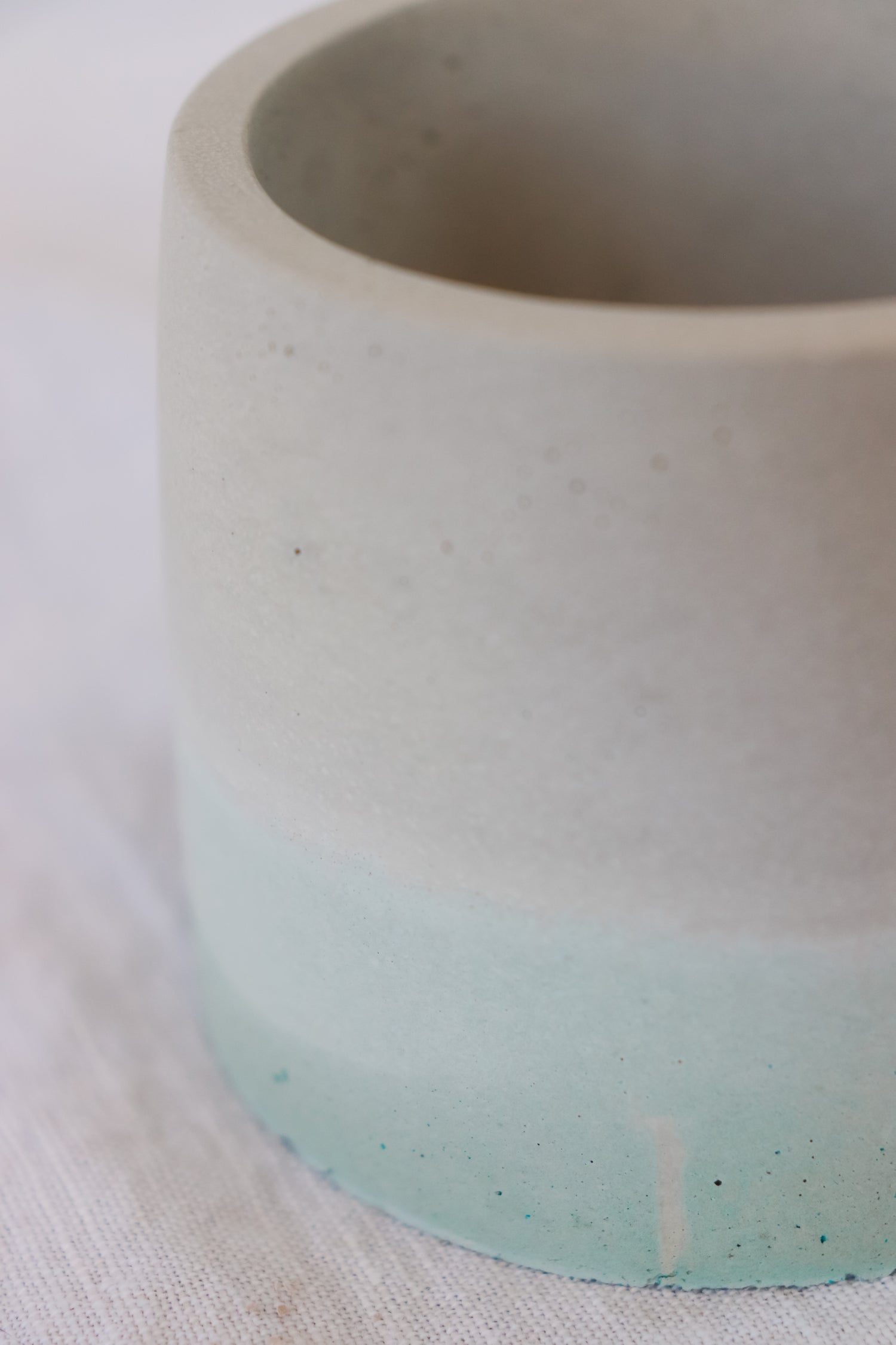 Set a simple yet sleek mood for growing with our hand-poured cement planter, featuring a circular rim, smooth matte surface, and a splash of color. Perfect for both the new plant hobbyist looking for a minimal addition to green up the space or the experienced plant enthusiast with a collection of propagations ready to be potted - this planter’s miniature size is suitable for plants of all kinds - cuttings, starter plants, and succulents. All colors are fully integrated with the cement before drying and will not wash off the surface. Additional colors and styles are available in this collection.