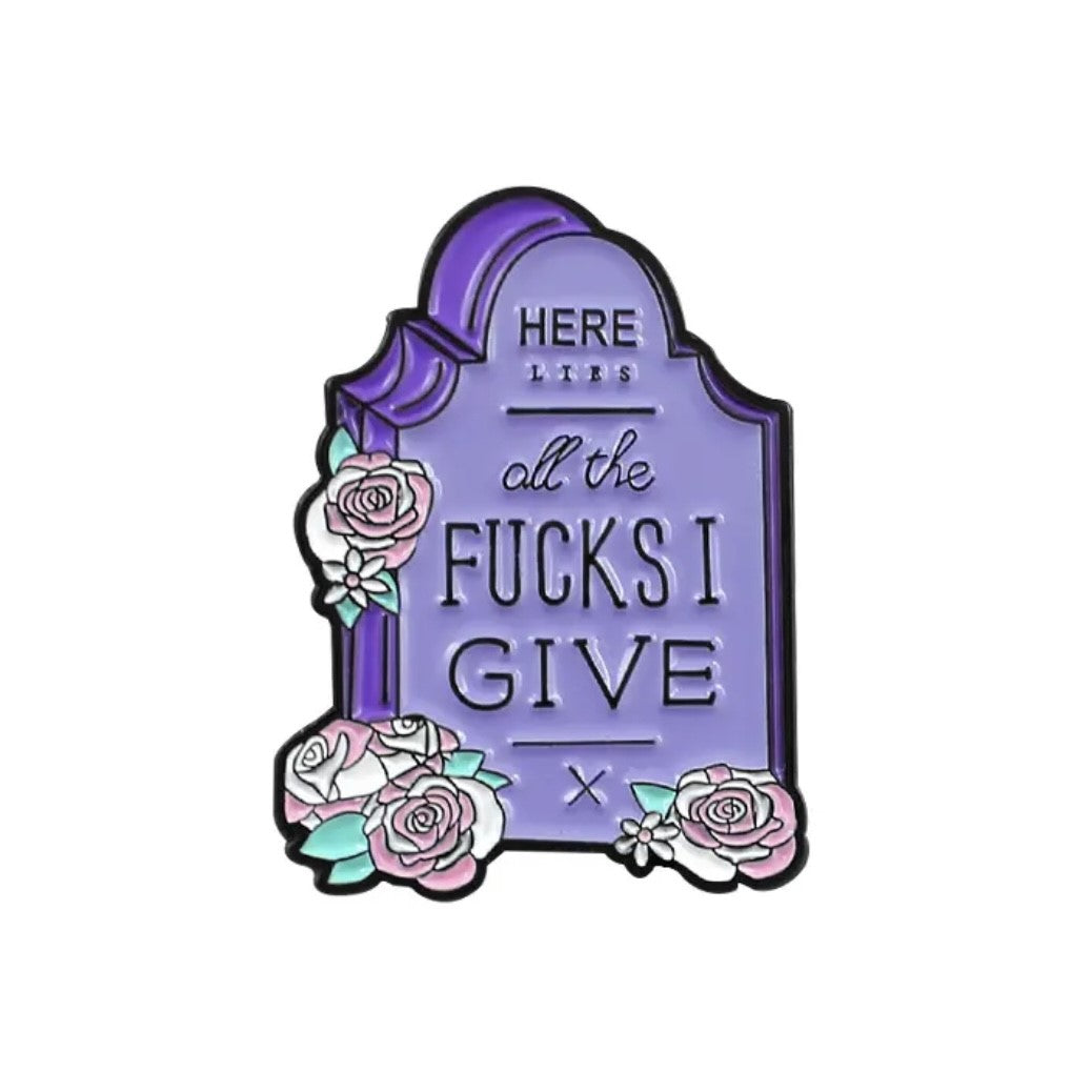 Here Lies All the F*cks I Give Gravestone Enamel Pin