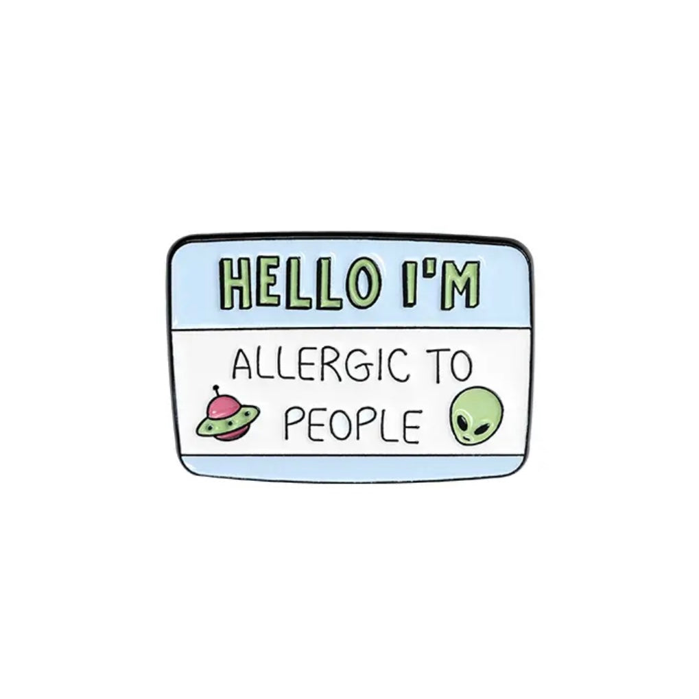 Hello I'm Allergic to People Name Badge Alien Enamel Pin