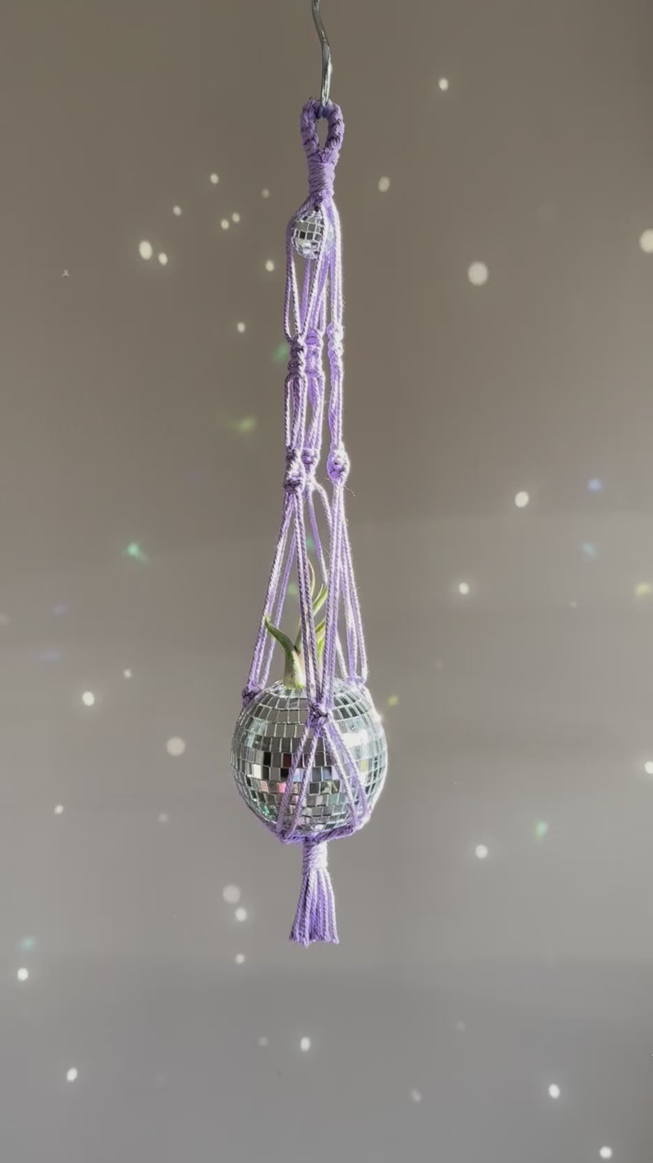 Disco Ball Macrame Planter + Air Plant - Lavender
