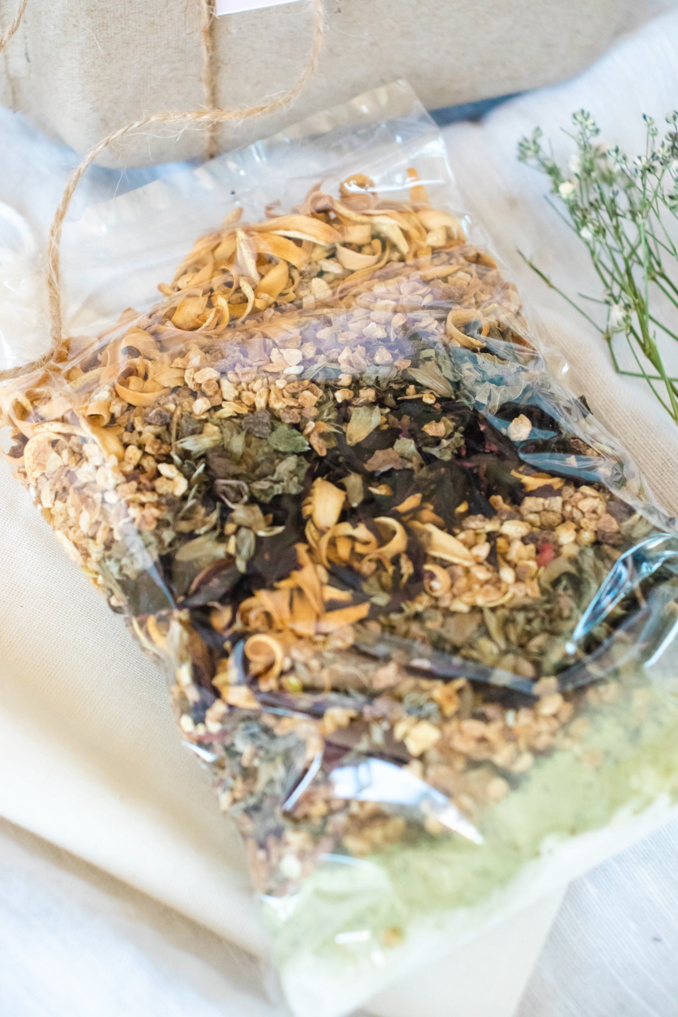 Although made with natural ingredients, this tea is created for your bath and not intended for consumption. Please keep the blend away from pets, as it is toxic if ingested! Baby's breath is NOT an edible flower and is included with our bath packaging! Consumption is TOXIC to both humans and pets! Please keep packaging away from pets!