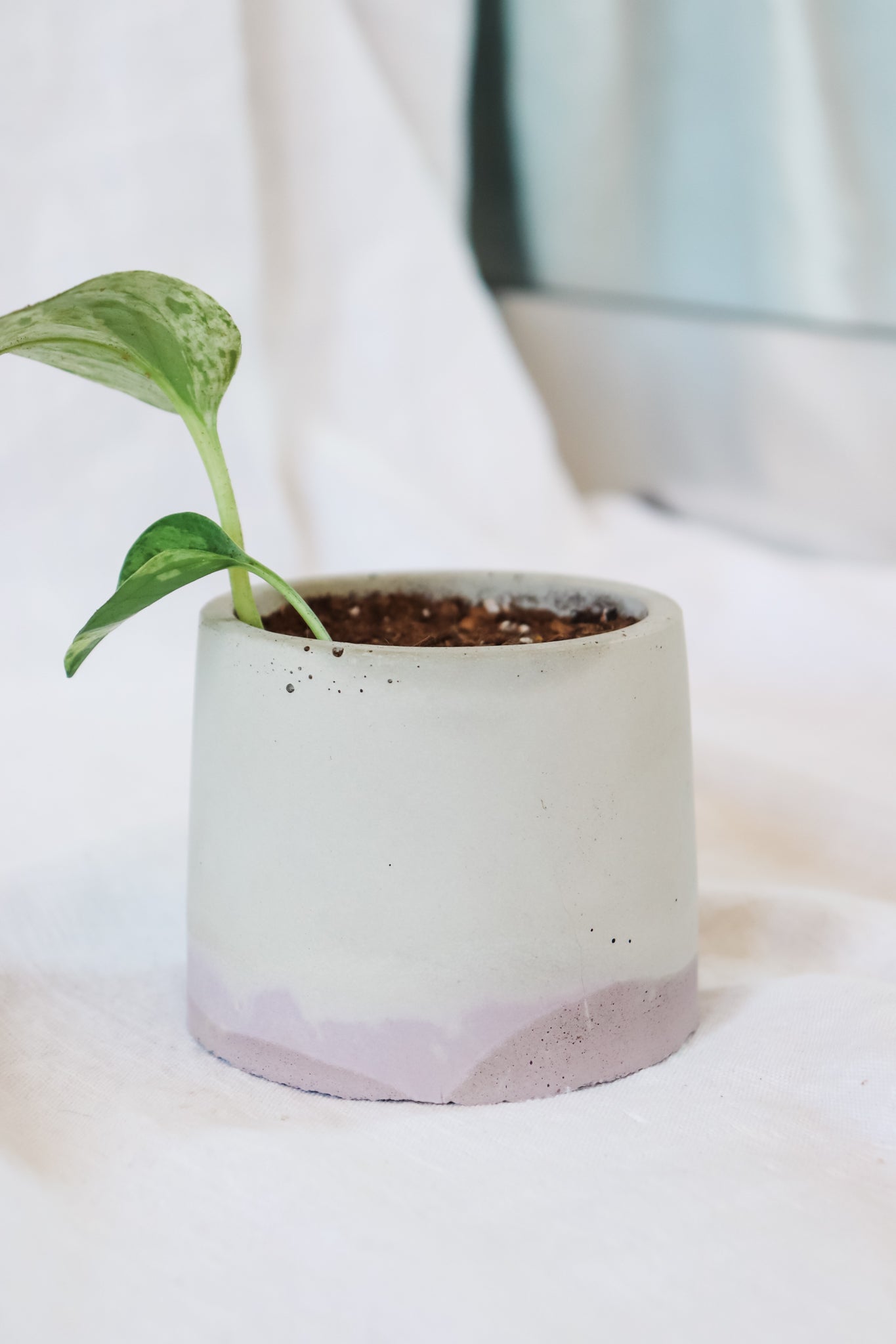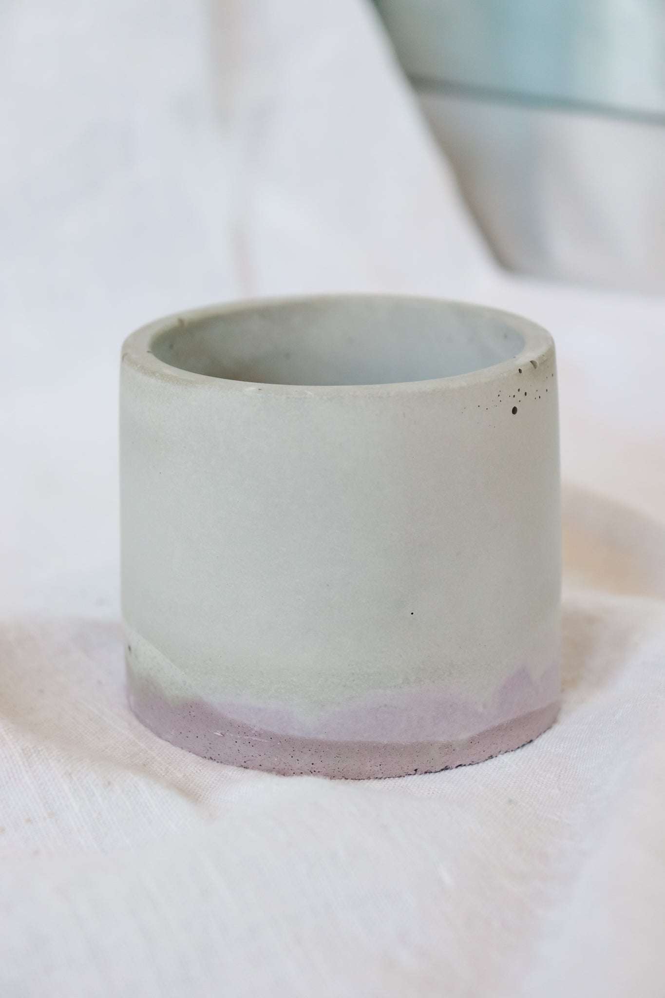 Set a simple yet sleek mood for growing with our hand-poured cement planter, featuring a circular rim, smooth matte surface, and a splash of color. Perfect for both the new plant hobbyist looking for a minimal addition to green up the space or the experienced plant enthusiast with a collection of propagations ready to be potted - this planter’s miniature size is suitable for plants of all kinds - cuttings, starter plants, and succulents. All colors are fully integrated with the cement before drying and will not wash off the surface. Additional colors and styles are available in this collection.