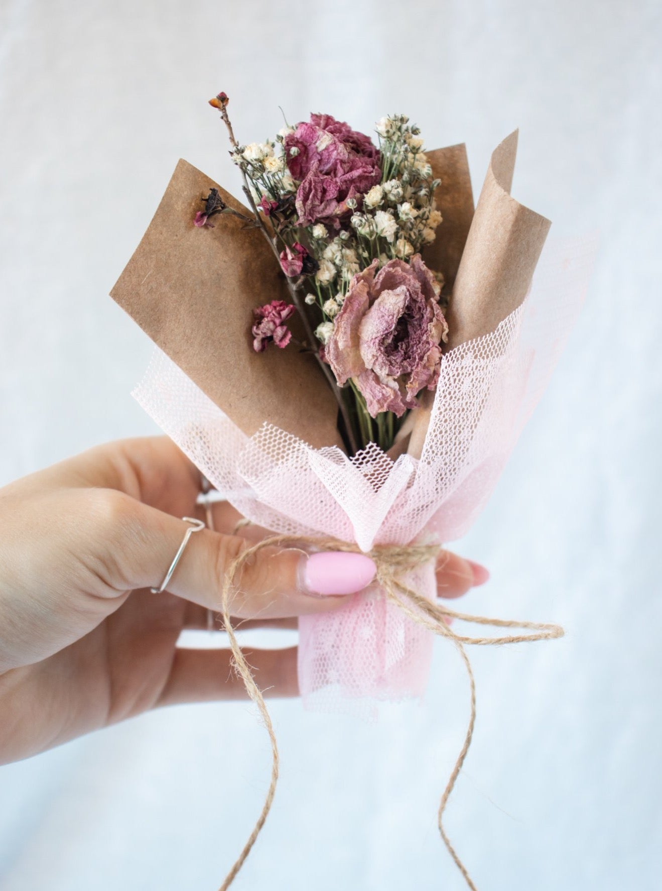 Mini Bouquet - Dried Pink Peony (Paeonia) Arrangement