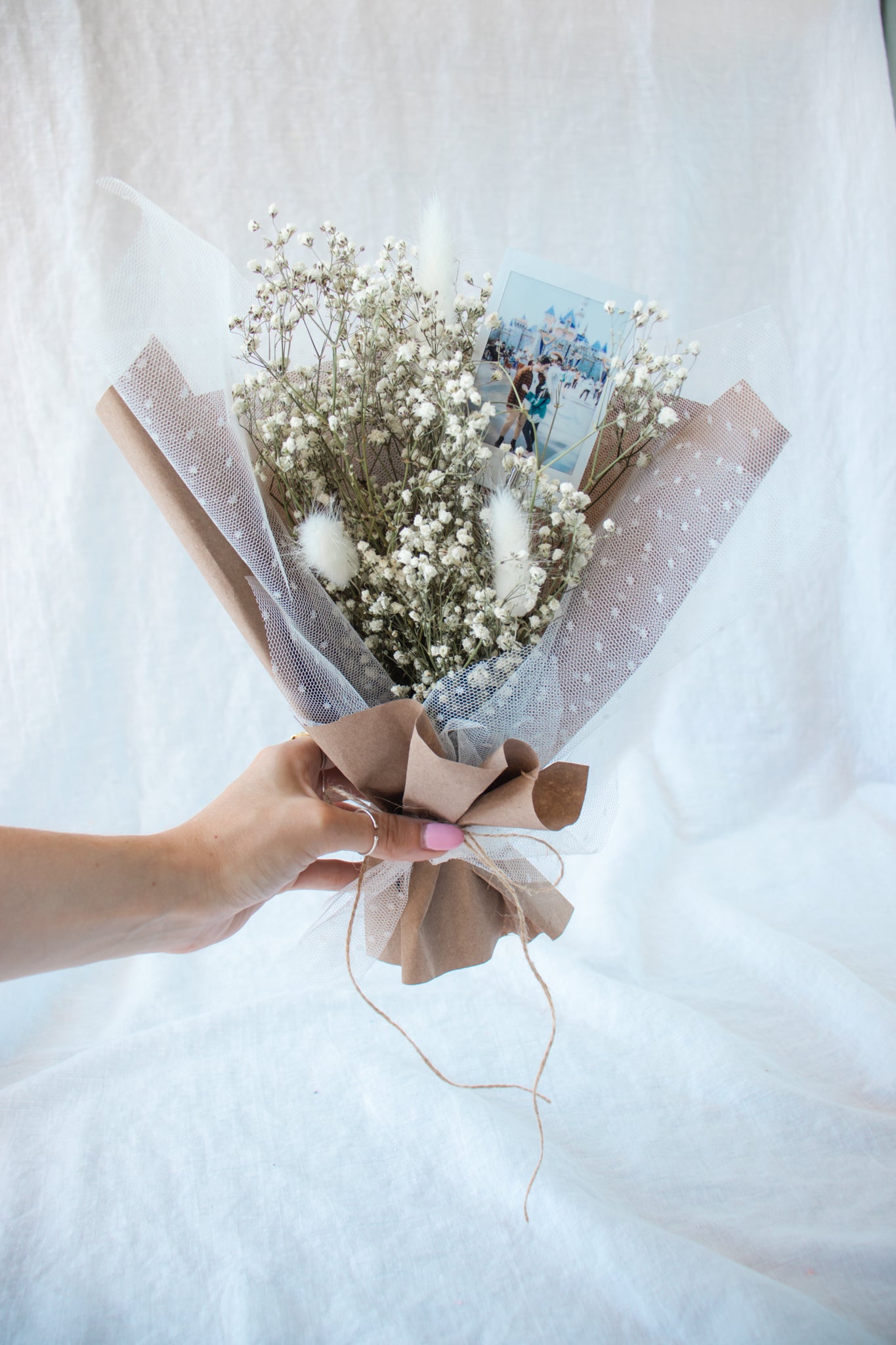 Petite Custom Photo Bouquet - Dried Baby’s Breath + Kraft Wrap