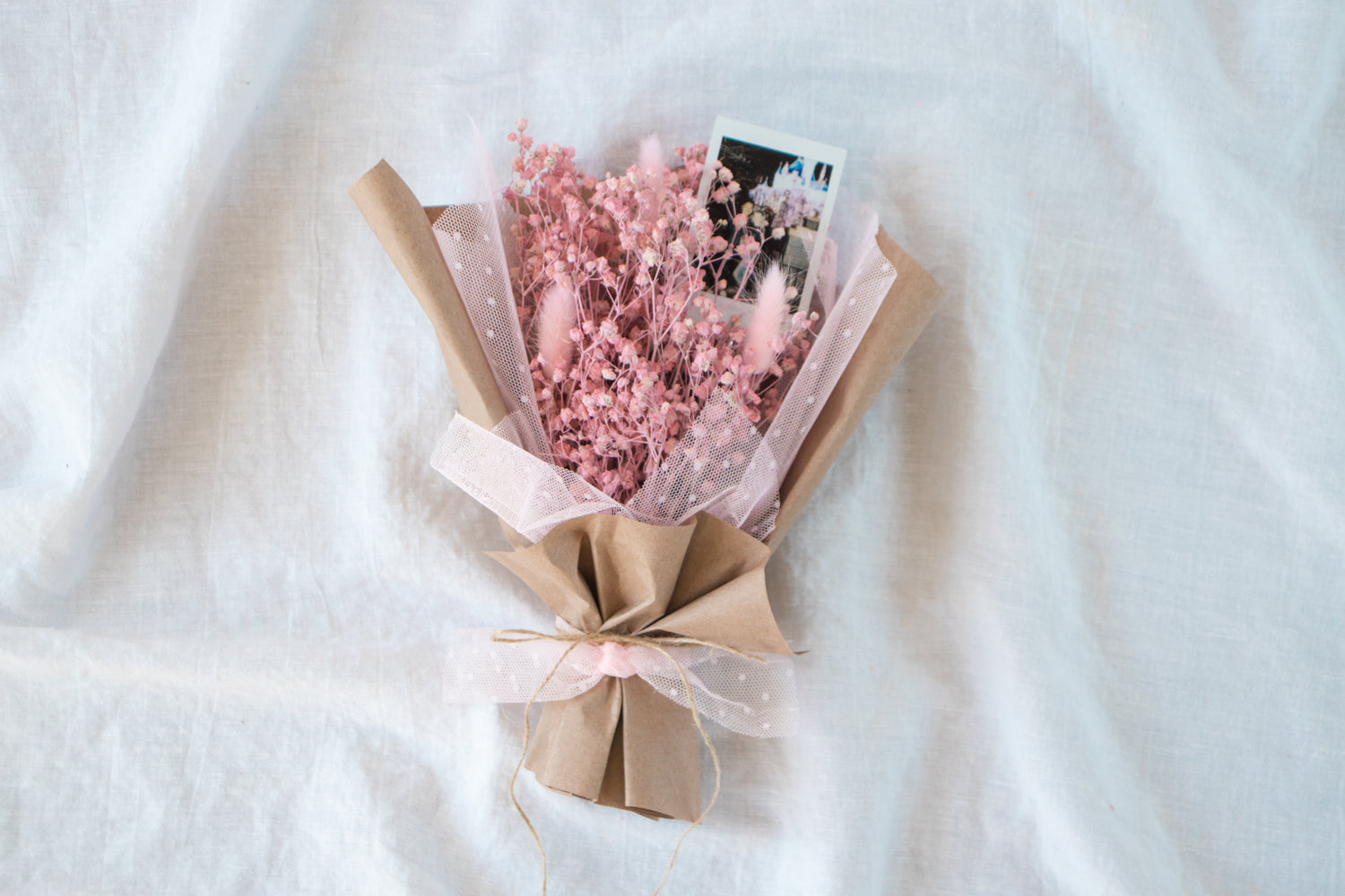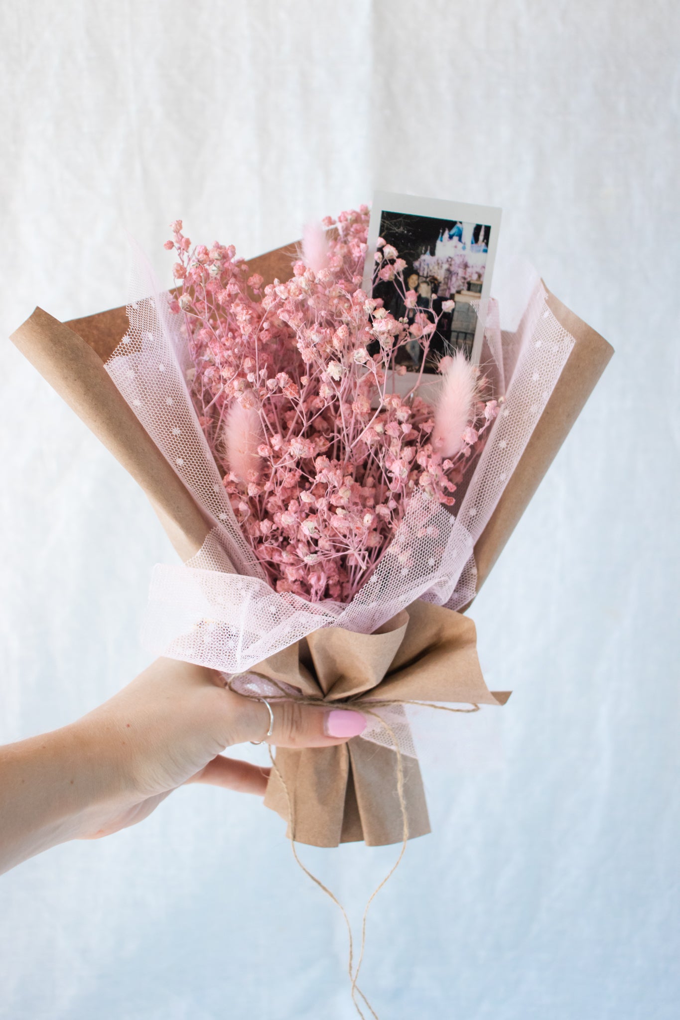 Petite Custom Photo Bouquet - Dried Pink Baby’s Breath + Kraft Wrap