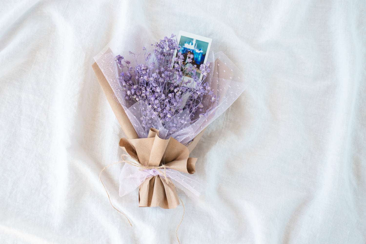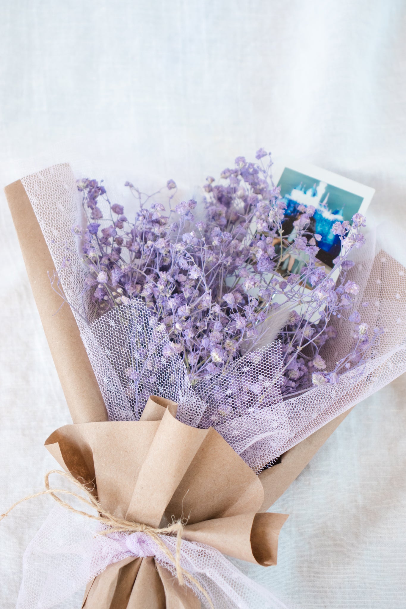 Petite Custom Photo Bouquet - Dried Purple Baby’s breath + Kraft Wrap