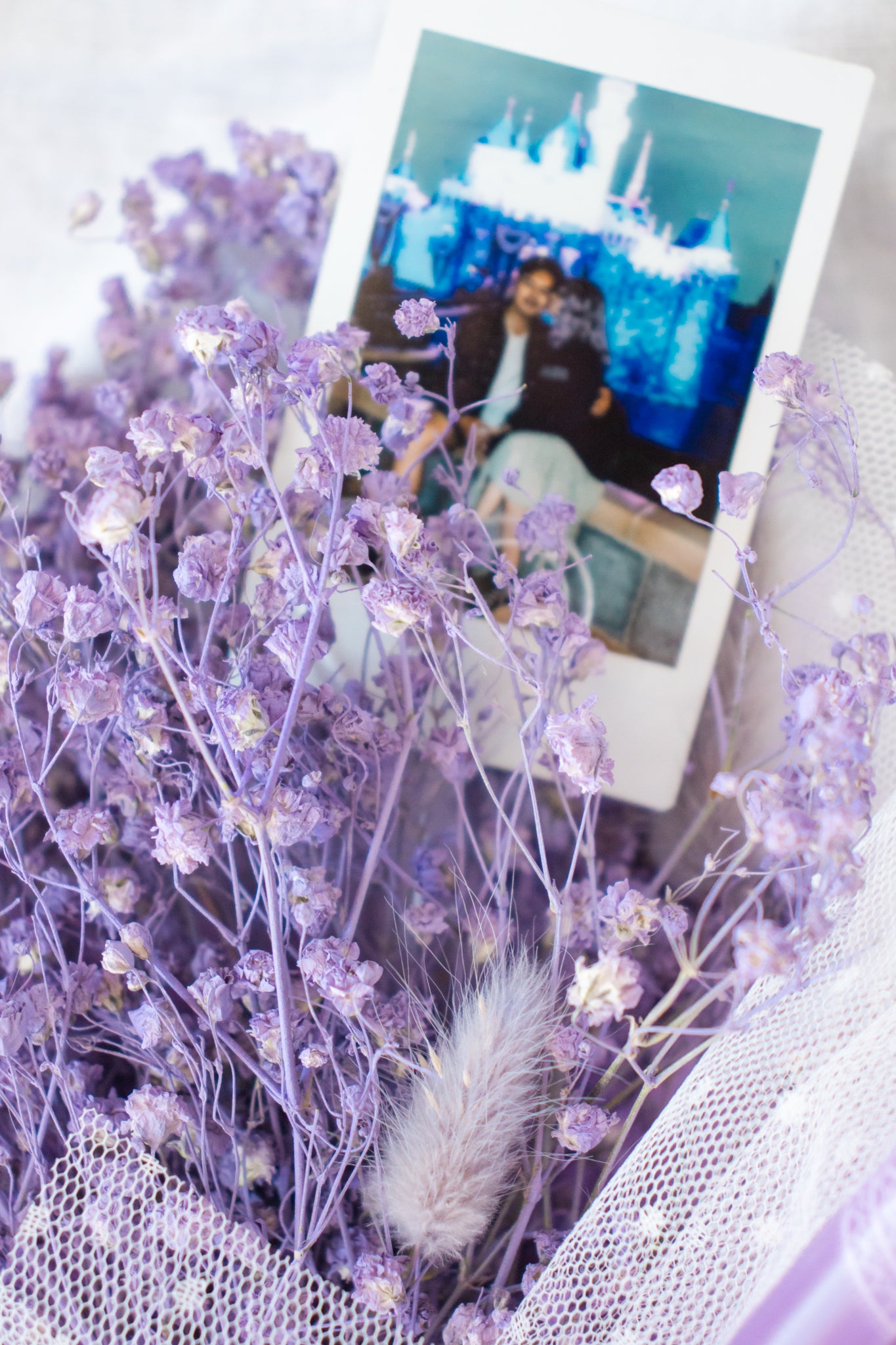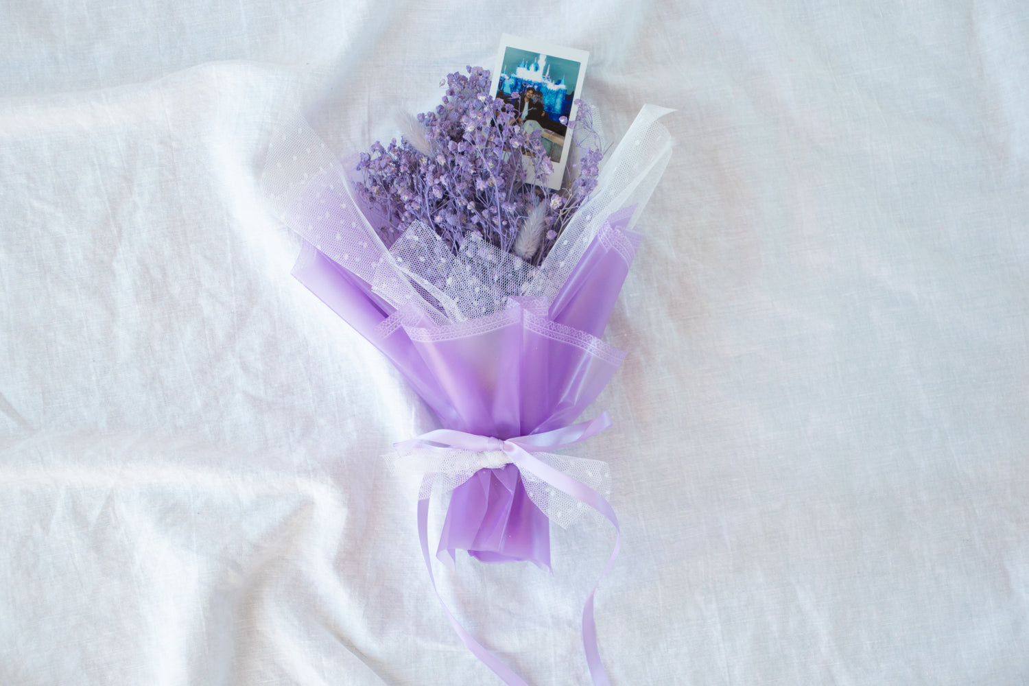 Petite Custom Photo Bouquet - Dried Purple Baby’s Breath + Lilac Wrap